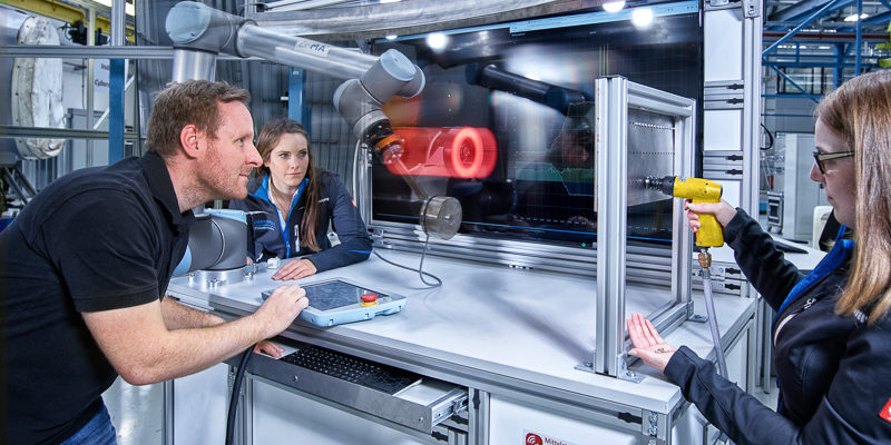 Human-robot collaboration in process control, sensor data fusion of camera, laser line sensor and force-moment sensor as well as AI algorithms. Smart devices for visualisation.