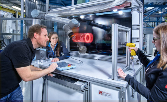 Problem In the demonstrator, the safe cooperation between humans and industrial robots is addressed. The developments focus on safe workplace and process design without the use of protective fences and cages. Advantages of the solution This solution consists in the development of a sensor system that monitors workplaces and demonstrates the synchronized Human-Robot cooperation. It…