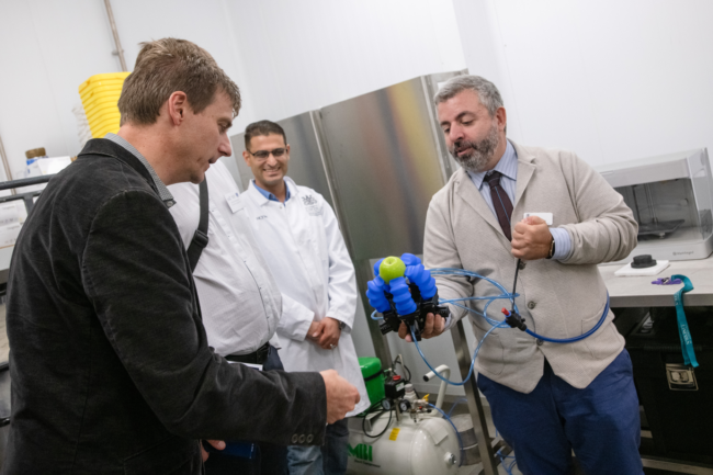 Soft grippers for cobot arm @ Food Tech Brainport, the Netherlands Components: Pneumatic demo model with two or more soft gripping fingers A soft gripper (of Soft Robotics), either fixed to a cobot arm or as a stand-alone is used to pick up various food produce. The fingers can be assembled from two up to…