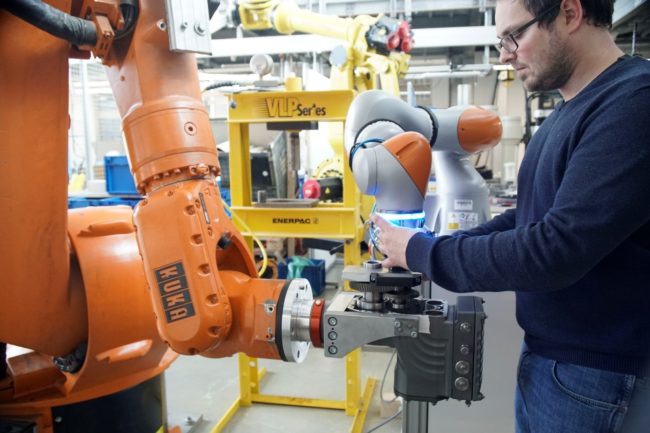 KUKA iiwa: Collaborative dismantling of geared motors The Department of Robotics and Control of the Environmental Campus at Trier University of Applied Sciences is concerned with the development of environmentally friendly production and dismantling processes, including human-robot cooperation. Environmentally friendly production also means the inclusion of used, but reusable system components in industrial production. For…