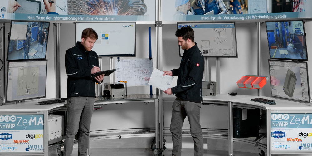The project is concerned with four areas of application, which are worked on and implemented by the companies Imperial, Woll Maschinenbau, XENON and ZF. In this way, different company and production areas, as well as their interconnectedness can be considered and further solutions developed. The focal point of the procedure, is on people, technology and the organization within the company and an in-depth analysis of the existing processes and procedures, enables weaknesses and disruptions in media to be uncovered. From the “As-Is” analysis, requirements are derived and solution concepts are developed, which are then consequently implemented and evaluated by users in the company. During the different stages of the project, employees are confronted with ideas, concepts and solutions, so that employee’s feedback can be integrated into the solutions.
